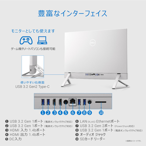 内蔵のデュアル5WスピーカーとDolby Atmos の立体音響からの聞きやすいクリアなオーディオ体験に没入できます。また、MyDell 内のWaves Audio社チューニングによるアプリケーションで、オーディオの好みを調整できます。Bluetoothスピーカーとしても利用可能です。