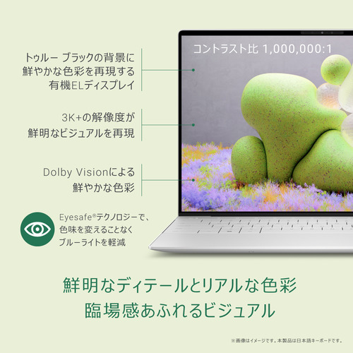 画面サイズ:13.4インチ、3K+OLED フレームレス タッチ 光沢(反射防止/防汚加工)ディスプレイ、400 nit、100%DCI P3、60Hz、Dolby Vision、Eyesafe テクノロジー