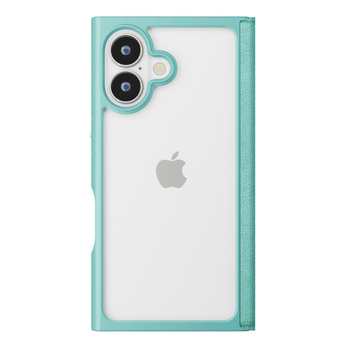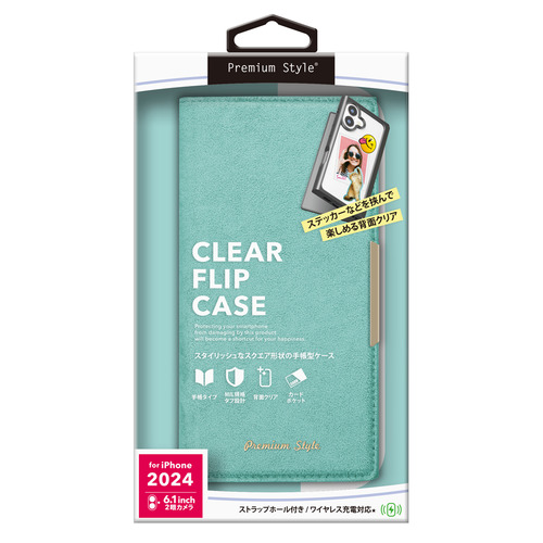 PGA PG-24ACF05BL iPhone16用 クリアフリップケース Premium Style スエード調/ターコイズ