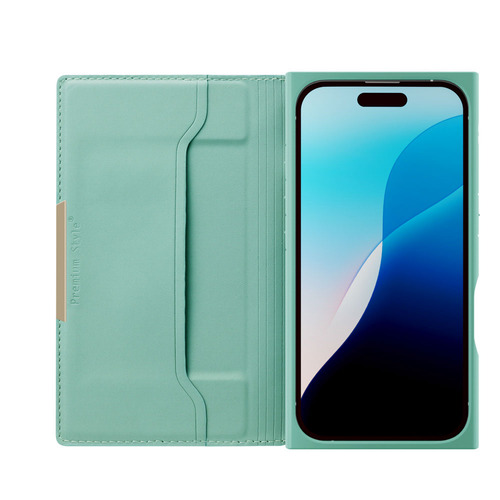 PGA PG-24ACF05BL iPhone 16用 クリアフリップケース [スエード調/ターコイズ] Premium Style