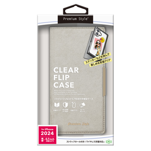 PGA PG-24ACF07GY iPhone16用 クリアフリップケース Premium Style スエード調/グレー