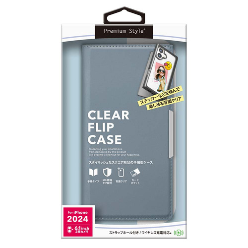 PGA PG-24ACF09BL iPhone 16用 クリアフリップケース [ブルー] Premium Style