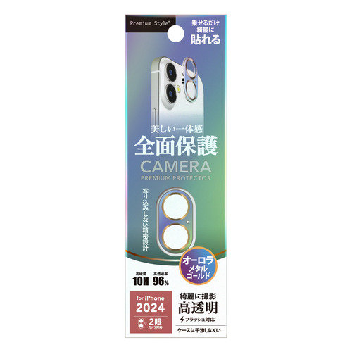 PGA PG-24ACLG14GD iPhone 16/16 Plus用 カメラフルプロテクター [オーロラ/ゴールド] Premium Style