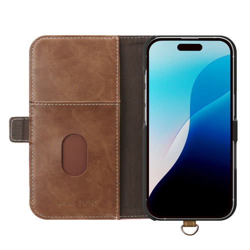 風合いの良い上質なPUレザー素材を使用したiPhone 16用 フリップカバーです。