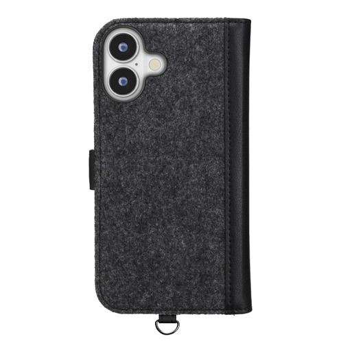 PGA PG-24AFP07BK iPhone16用 フリップカバー Premium Style フェルト/ブラック