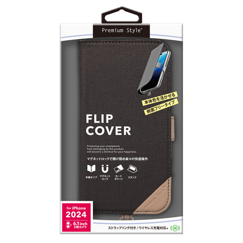 PGA PG-24AFP09GY iPhone16用 フリップカバー Premium Style キャンバス/チャコールグレー