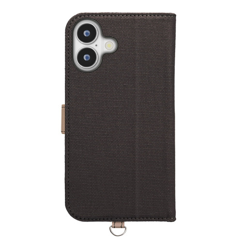 丈夫で水濡れにも強いキャンバス生地(ポリエステル素材)を使用したiPhone 16用 フリップカバーです。