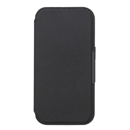 PGA PG-24AGF04BK iPhone16用 ガラスフリップケース Premium Style ナイロンメッシュ調/ブラック