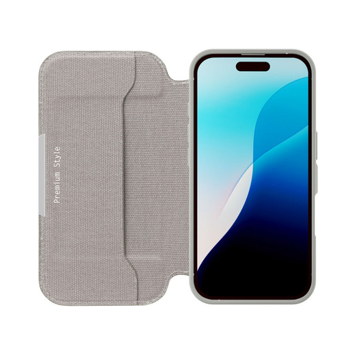 PGA PG-24AGF08GY iPhone 16用 ガラスフリップケース [キャンバス/ライトグレー] Premium Style