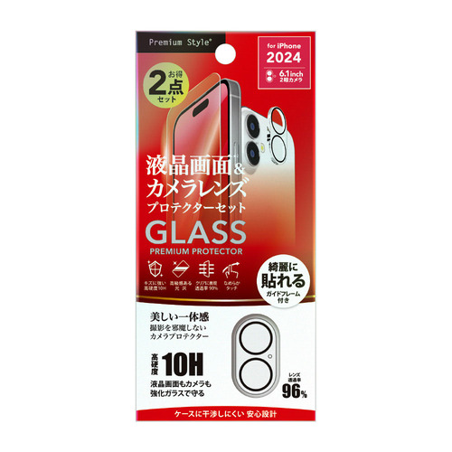 PGA PG-24AGLPST iPhone 16/15/15 Pro用 液晶保護ガラス [カメラプロテクターセット/高透明] Premium Style