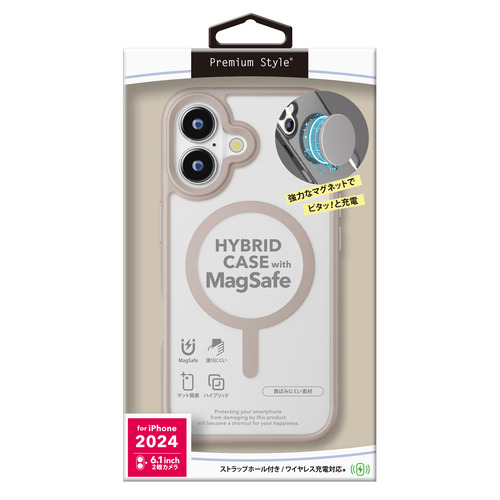PGA PG-24AMGPT05BE iPhone 16用 MagSafe対応 ハイブリッドケース [ベージュ] Premium Style