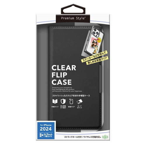 PGA PG-24BCF01BK iPhone 16 Pro用 クリアフリップケース [ブラック] Premium Style