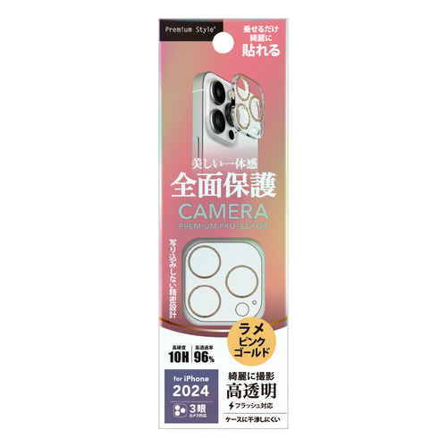 PGA PG-24BCLG08PK iPhone 16 Pro・16 Pro Max用 カメラフルプロテクター Premium Style ラメピンクゴールド