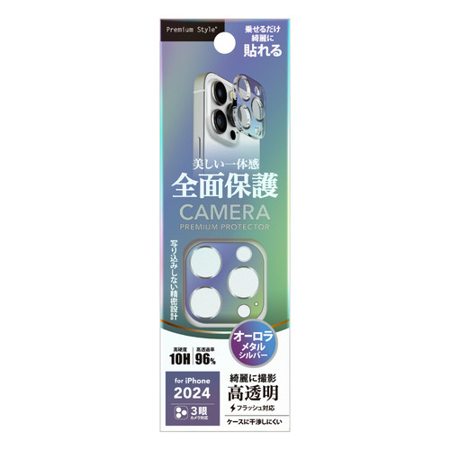 PGA PG-24BCLG13SV iPhone 16 Pro/16 Pro Max用 カメラフルプロテクター [オーロラ/シルバー] Premium Style