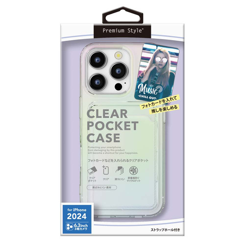 PGA PG-24BCTP02AR iPhone 16 Pro用 クリアポケットケース [オーロラ] Premium Style