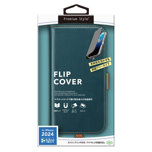 PGA PG-24BFP01BL iPhone16 Pro用 フリップカバー Premium Style ブルー