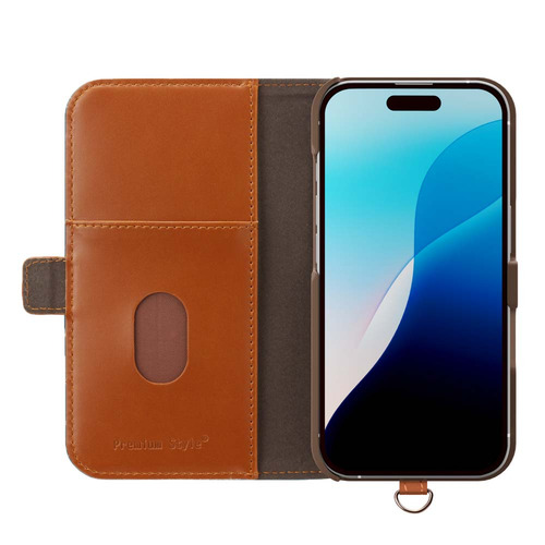 風合いの良い上質なPUレザー素材を使用したiPhone 16 Pro用 フリップカバーです。