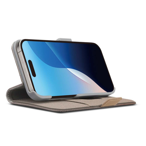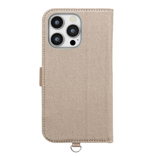 丈夫で水濡れにも強いキャンバス生地(ポリエステル素材)を使用したiPhone 16 Pro用 フリップカバーです。