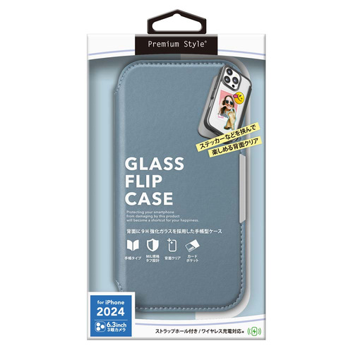 PGA PG-24BGF03BL iPhone 16 Pro用 ガラスフリップケース [ブルー] Premium Style