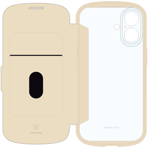 NATURAL design IP24-61-CHN07 iPhone16 背面手帳型ケース CHROME−NATURAL ベージュ