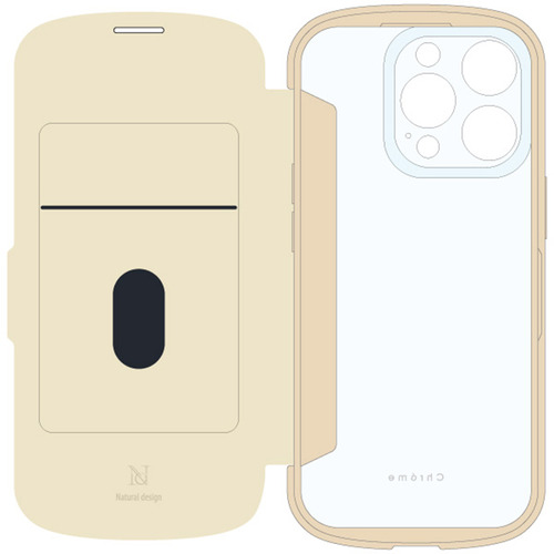 NATURAL design IP24-61P-CHN07 iPhone16 Pro 背面手帳型ケース CHROME−NATURAL ベージュ
