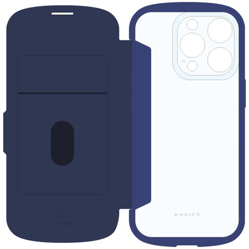 NATURAL design IP24-61P-CHN08 iPhone16 Pro 背面手帳型ケース CHROME−NATURAL ブルー