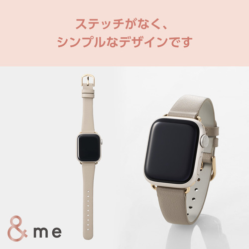 エレコム AW-41BDLJGB Apple Watch用 &me ソフトレザーバンド スリム グレージュ