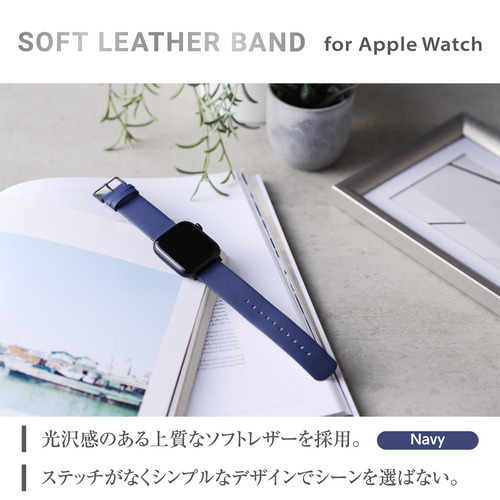 エレコム AW-45BDLNV Apple Watch Ultra 2 / Ultra / SE用ソフトレザーバンド ネイビー