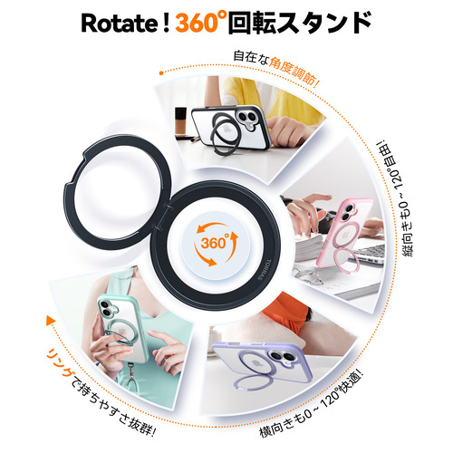 握りやすい滑り止めが施された凹面デザインを採用。ほこりと指紋ががつきにくいコーティング。360°回転可能なマグネットスタンド。