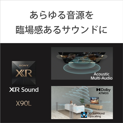 認知特性プロセッサー「XR」によって、あらゆるコンテンツを立体音響に。テレビのスピーカーだけで、左右方向に加え、高さ方向も加えた3次元の立体音響を実現するため、「ドルビーアトモス」以外のコンテンツでも臨場感のある音響空間をお楽しみいただけます。※ モノラル音源は非対応になります 【仕様】