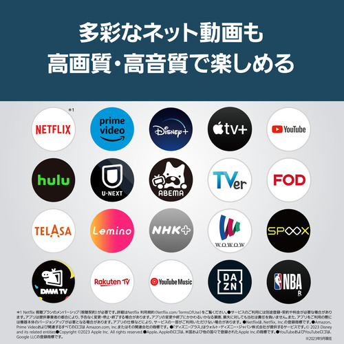 付属品名称:リモコン,リモコン用乾電池×2,取扱説明書,電源コード,転倒・落下防止部品(一式),保証書●本機は従来のB-CASカードに代わり「ACASチップ」を内蔵しています。