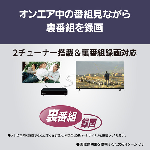 録画:USBハードディスク録画対応(※テレビ本体に録画することはできません。別売のUSBハードディスクを接続してください。※)