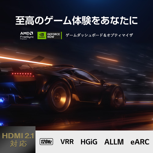 HDMI2.1で指定されたeARC、VRR(可変リフレッシュレート)、ALLM(自動低遅延モード)をサポートしています。最新ゲーム機にも対応し、ゲーム機本来のスペックを余すことなく発揮できます。