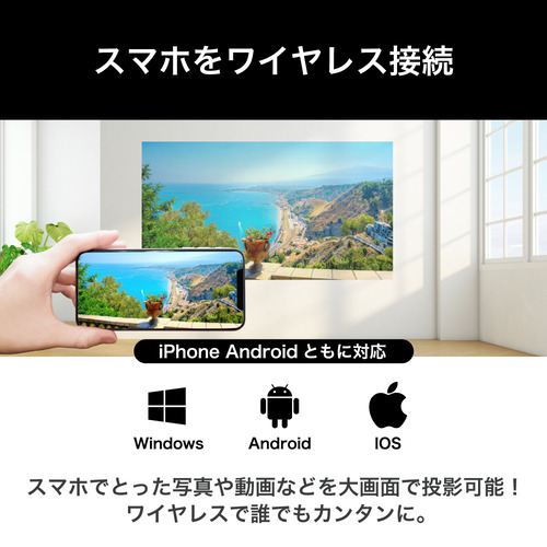 iOS/Android/Windowsの映像を投影可能(携帯電話・パソコン等)