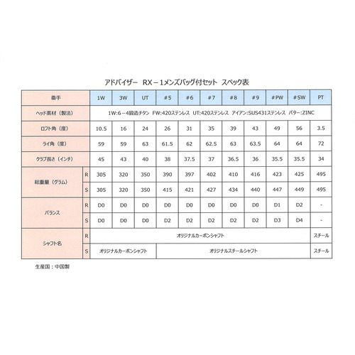 アドバイザー(advisor) RX-1メンズクラブ付セット 右用 メンズバッグ付セット advisor Sスペック ブラックRX1メンズクラブ付セット 右用