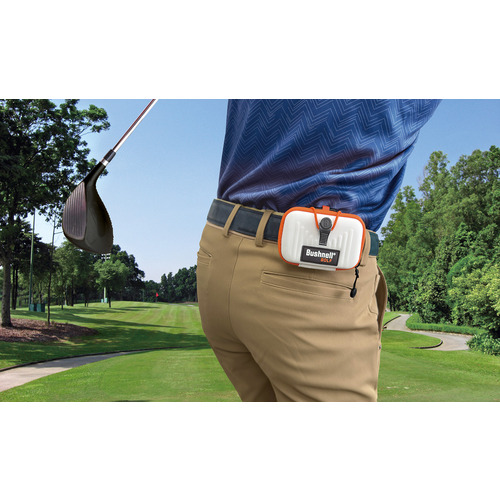 ピンシーカーA1スロープジョルトは139g、全長95mmの歴代最小・最軽量レーザー距離計。小柄ながらIPX6の完全防水で350ヤードまでのピンフラッグ測定可能距離を誇る。標準付属のベルト通し付きプレミアム専用ケースは横型コンパクトでストレスのない携帯性を実現。エントリーモデルとして、女性やジュニアゴルファーにも重宝。