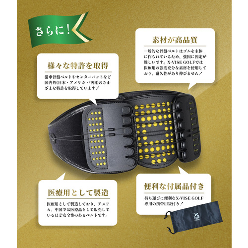 腰痛や肩こりの大きな原因が姿勢の悪さからきています。骨盤を締めるだけでも上がらなかった腕が上がるようになった等の事例が多くあります。X-VISE GOLFは効果的に骨盤を締め、身体向上力を助けます。正しい姿勢になることで股関節の骨の位置が正しい状態になり、筋肉も正しい動きをするので軽く感じるようになります。