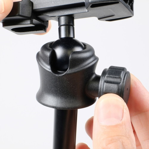 自由雲台の採用で、ロックを1カ所緩めれば、あらゆる方向にカメラを向けられます。ボール部は金属製で滑らかな動きを実現。