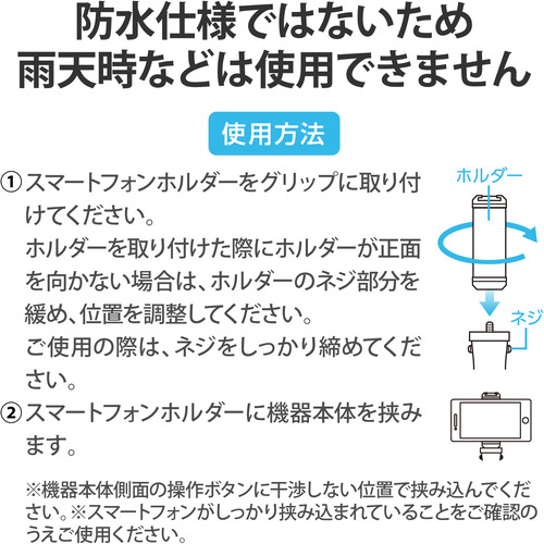 材質:ハンドグリップ:ABS・鉄・ゴム、スマートフォンホルダー:ABS・鉄・ゴム・EVA