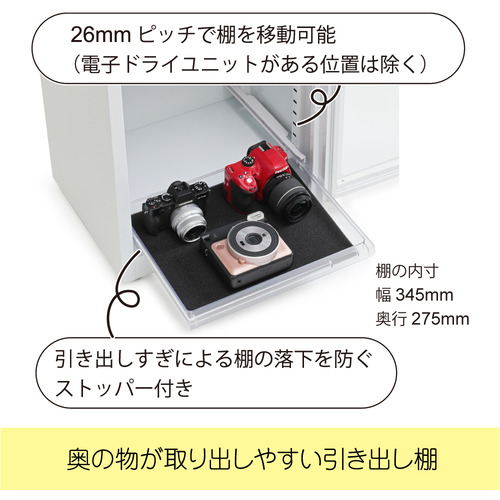 装備:引き出し棚×4、波形レンズホルダー、アナログ湿度計