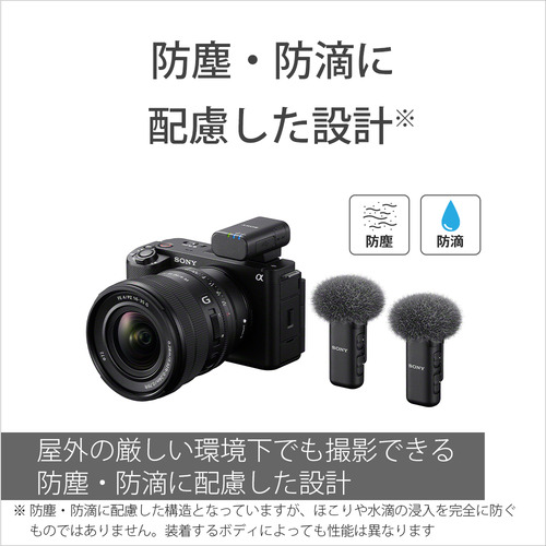 持ち運びや撮影時にも邪魔にならない小型・軽量サイズ。防塵防滴に配慮(*)した設計 * 防塵・防滴に配慮した構造となっていますが、ほこりや水滴の浸入を完全に防ぐものではありません