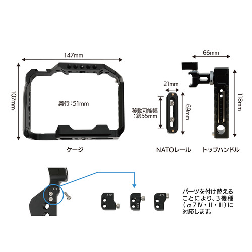 ●機種専用設計で、バッテリーの脱着等、基本機能を損ないません。※付属パーツを付け替えることでα7IV,α7III,α7II,に適合します