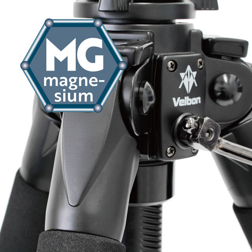 三脚の開脚基部に当たるボディにはマグネシウム製ワンピース構造を採用。強度・振動吸収性・軽さにおいて優れた素材を使用し、剛性を重視した設計になっています。