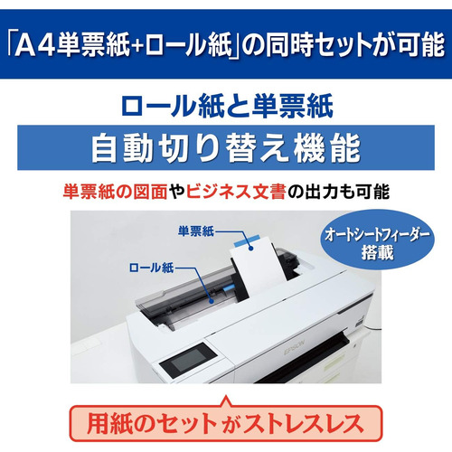 給紙方式:ロール紙:1本、単票紙(1枚):手差し給紙、単票(オートシートフィーダ):フリクション方式
