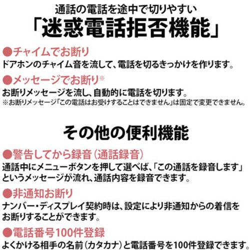 迷惑電話拒否機能:有