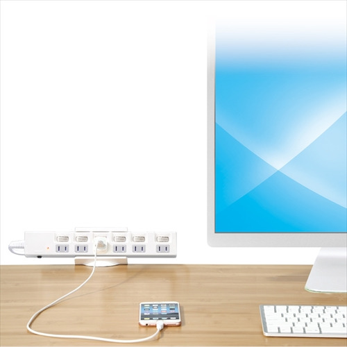 ●お手持ちのタップを挟んで、机や棚に固定ができて、抜き差しが便利です。