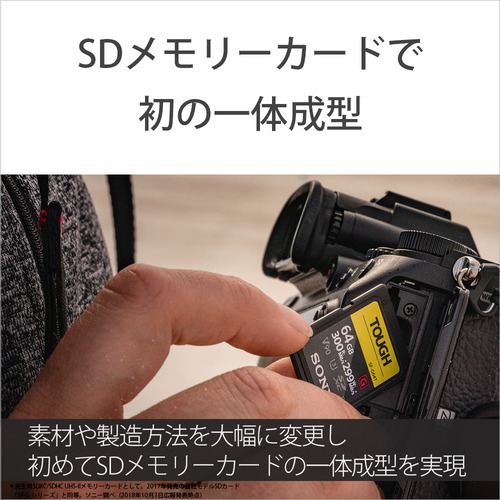 ソニーの「SF-Gシリーズ タフ仕様」は素材や製造方法を大幅に変更し、初めてSDメモリーカードの一体成型を実現(*1)しました。これにより強靭性が増し、防水性も強化され、より安心して使用できるSDメモリーカードとして進化(*2)しました。