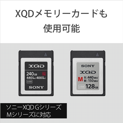 ●Super Speed USB 10Gbps(USB 3.1 Gen 2)に対応し、CFexpress Type B と XQDメモリーカード(*1)の高速転送を実現 *1 ソニーXQD Gシリーズ、Mシリーズに対応