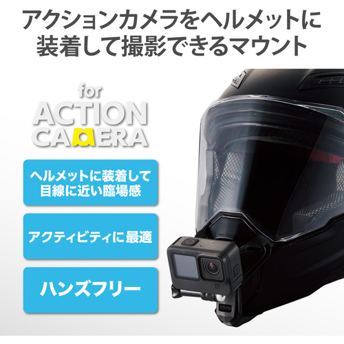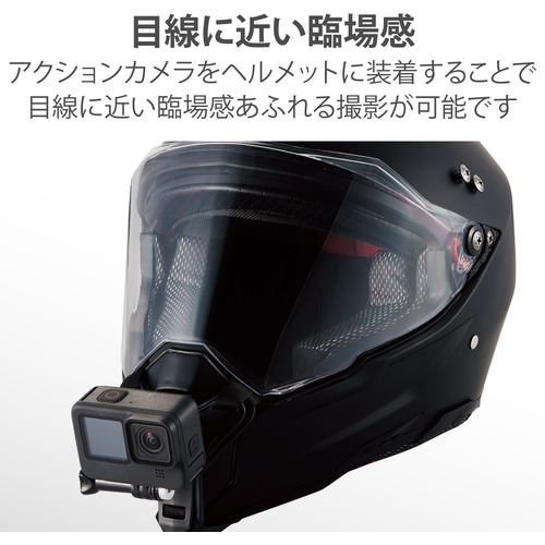 ●GoPro HERO10/9/8/7/6/5/MAXなどを目線に近い場所に固定できて臨場感あふれる撮影ができる、アクションカメラ用ヘルメットマウントです。