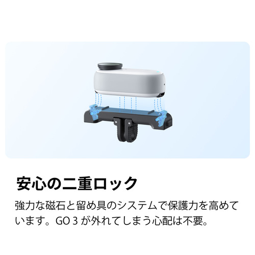 強力な磁石と留め具のシステムで保護力を高めています。GO 3が外れてしまう心配は不要。